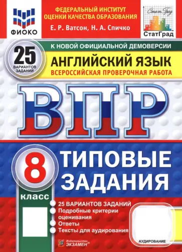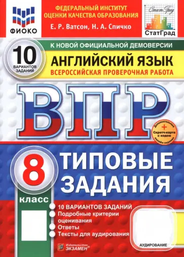 Ватсон Е.Р. - Английский язык 8 класс. Всероссийская проверочная работа. 10 вариантов. Типовые задания. Тексты для аудирования ФГОС ФИОКО (м)