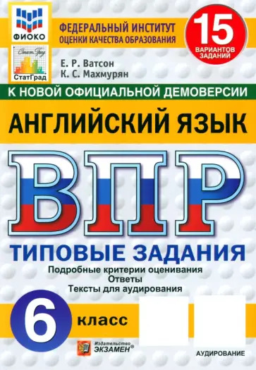 Ватсон Е.Р., Махмурян К.С. - Английский язык 6 класс. Всероссийская проверочная работа. 15 вариантов. Типовые задания. Тесты для аудирования ФИОКО ФГОС новый (м)