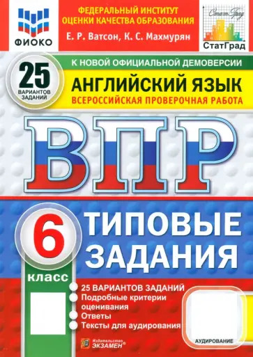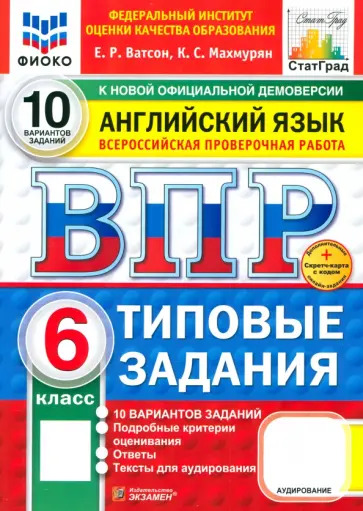 Ватсон Е.Р., Махмурян К.С. - Английский язык 6 класс. Всероссийская проверочная работа. 10 вариантов. Типовые задания. Тесты для аудирования ФИОКО ФГОС новый (м)